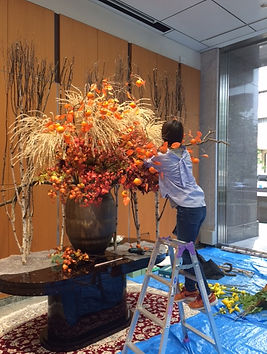 年に二度 コンワビル内で勤務されている方々が 全員参加される防災訓練時に 一階のメインエントランスに集合するので、花台の移動も踏まえての製作依頼を受けました。