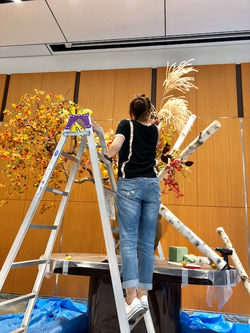 花材:雪柳・カーネーション・チース・デルフィニュウム